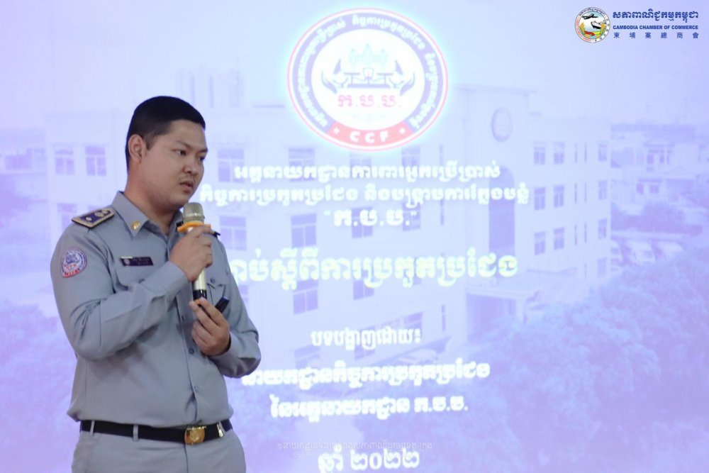 មន្ត្រីជំនាញដែលអញ្ជើញមកពីក្រុមប្រឹក្សាអភិវឌ្ឍន៍កម្ពុជា(CDC) និងអគ្គនាយកដ្ឋានការពារអ្នកប្រើប្រាស់ កិច្ចការប្រកួតប្រជែង និងបង្ក្រាបការក្លែងបន្លំ នៃក្រសួងពាណិជ្ជកម្ម បានផ្តល់ចំណេះដឹងលម្អិតអំពីបទប្បញ្ញត្តិពាក់ព័ន្ធនឹង ច្បាប់ស្តីពីវិនិយោគនៃព្រះរាជាណាចក្រកម្ពុជា ច្បាប់ ស្តីពីកិច្ចការពារអ្នកប្រើប្រាស់ ច្បាប់ ស្តីពីការប្រកួតប្រជែង និងច្បាប់ ស្តីពីការគ្រប់គ្រងគុណភាព សុវត្ថិភាពលើផលិតផលទំនិញ និងសេវា។ គោលបំណងនៃសិក្ខាសាលានេះគឺដើម្បីផ្សព្វផ្សាយច្បាប់ និងបទដ្ឋានគតិយុត្ត ពាក់ព័ន្ធនឹងវិស័យពាណិជ្ជកម្ម ជំរុញការយល់ដឹងអោយកាន់តែទូលំទូលាយជូនដល់ភាគីពាក់ព័ន្ធដើម្បីកាត់បន្ថយបញ្ហាប្រឈមផ្នែកផ្លូវច្បាប់ ដល់ធុរកិច្ចជនដែលកំពុងប្រកបអាជីវកម្មដើម្បីស្វែងយល់អំពីច្បាប់ និងបទដ្ឋានគតិយុត្ត នៅក្នុងព្រះរាជាណាចក្រកម្ពុជា។