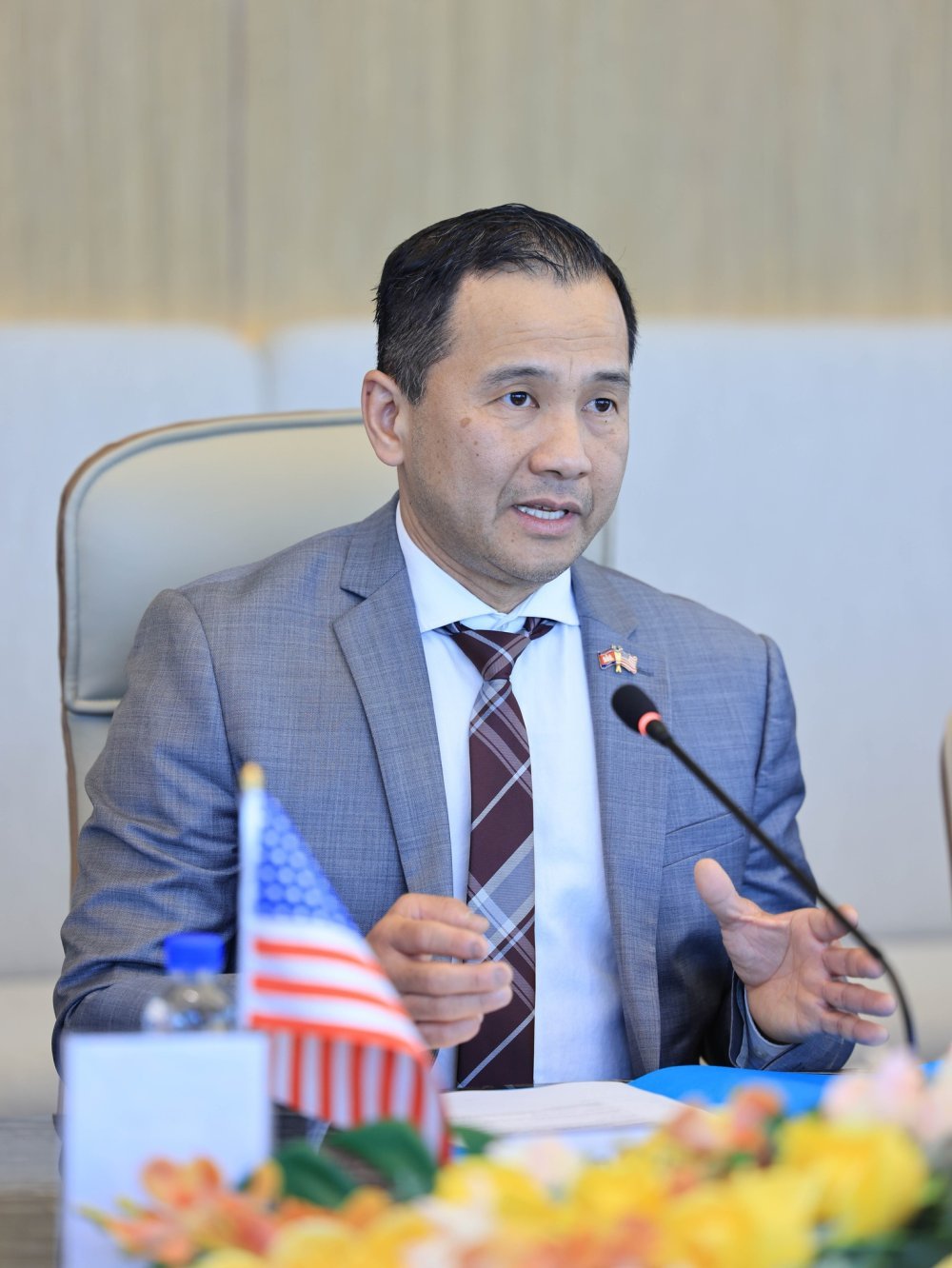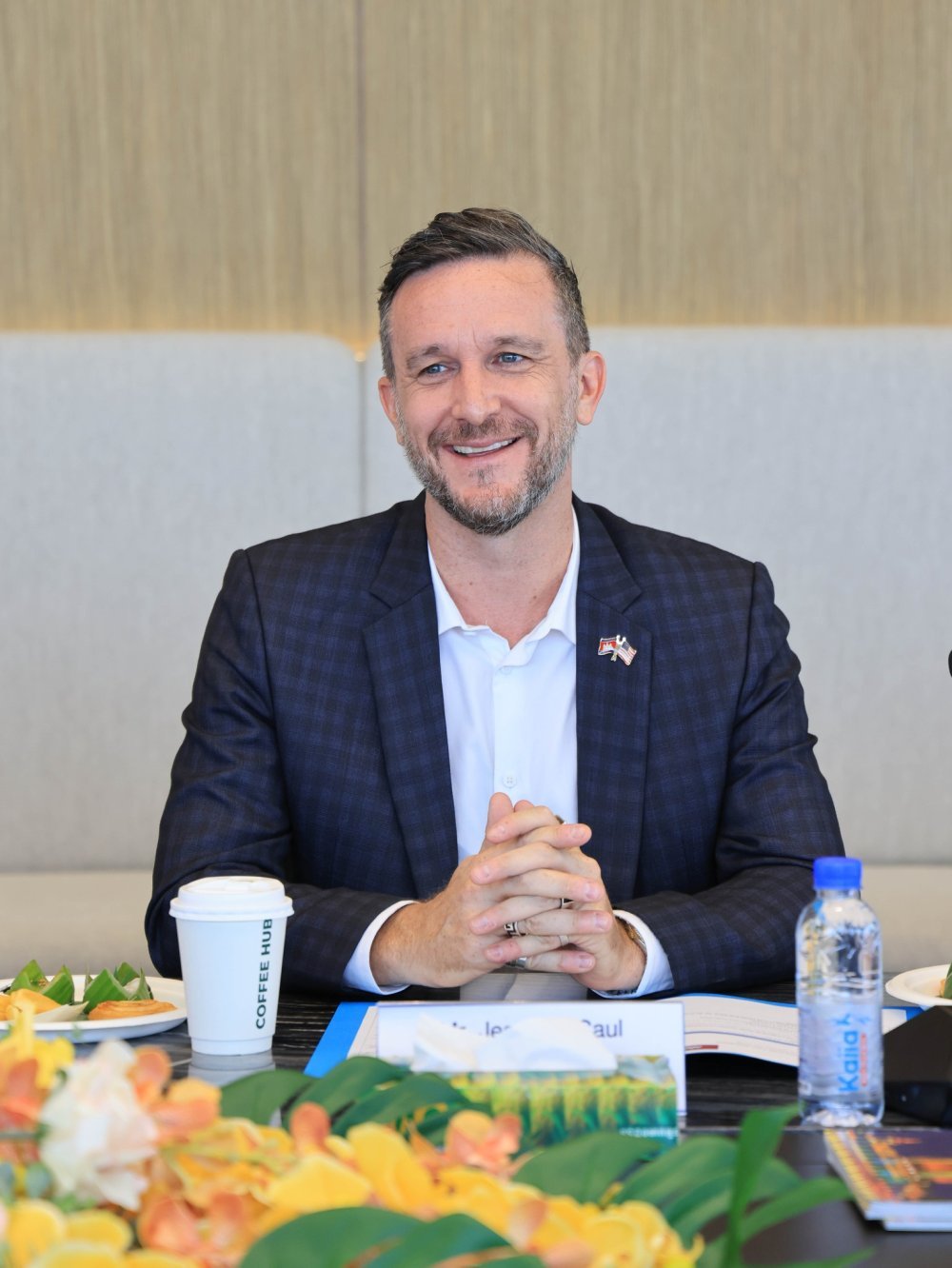 លោក គីមឆា ហួត បានថ្លែងអំណរគុណយ៉ាងជ្រាលជ្រៅចំពោះ អ្នកឧកញ៉ា គិត ម៉េង ដែលបានអនុញ្ញាតឱ្យប្រតិភូពាណិជ្ជកម្មសហរដ្ឋអាមេរិក ក្នុងការជួបពិភាក្សាការងារ ជាពិសេសបានស្វែងយល់កាន់តែច្បាស់អំពីបរិយាកាសវិនិយោគនៅកម្ពុជា។