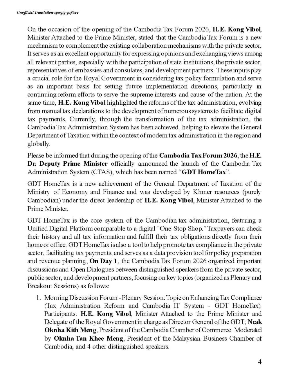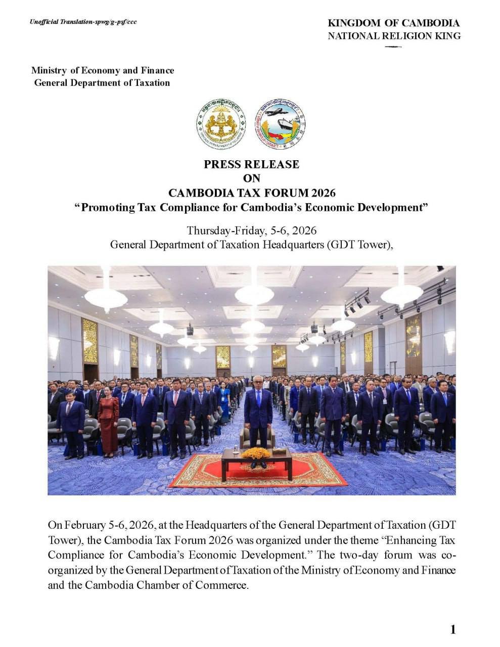 Press Release: CAMBODIA TAX FORUM 2026 – “Promoting Tax Compliance for Cambodia’s Economic Development”