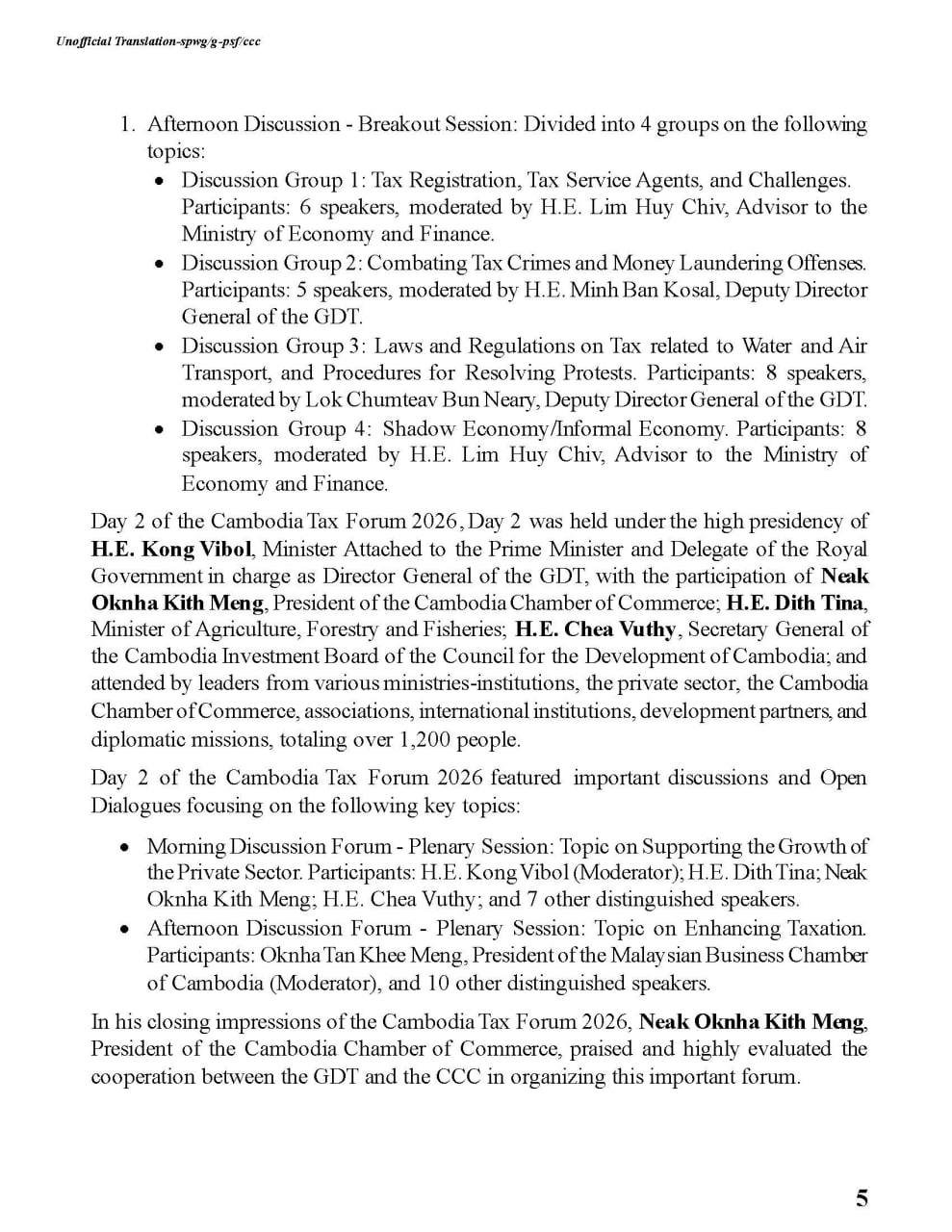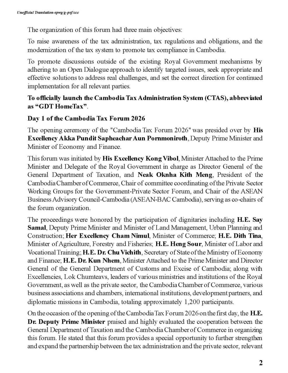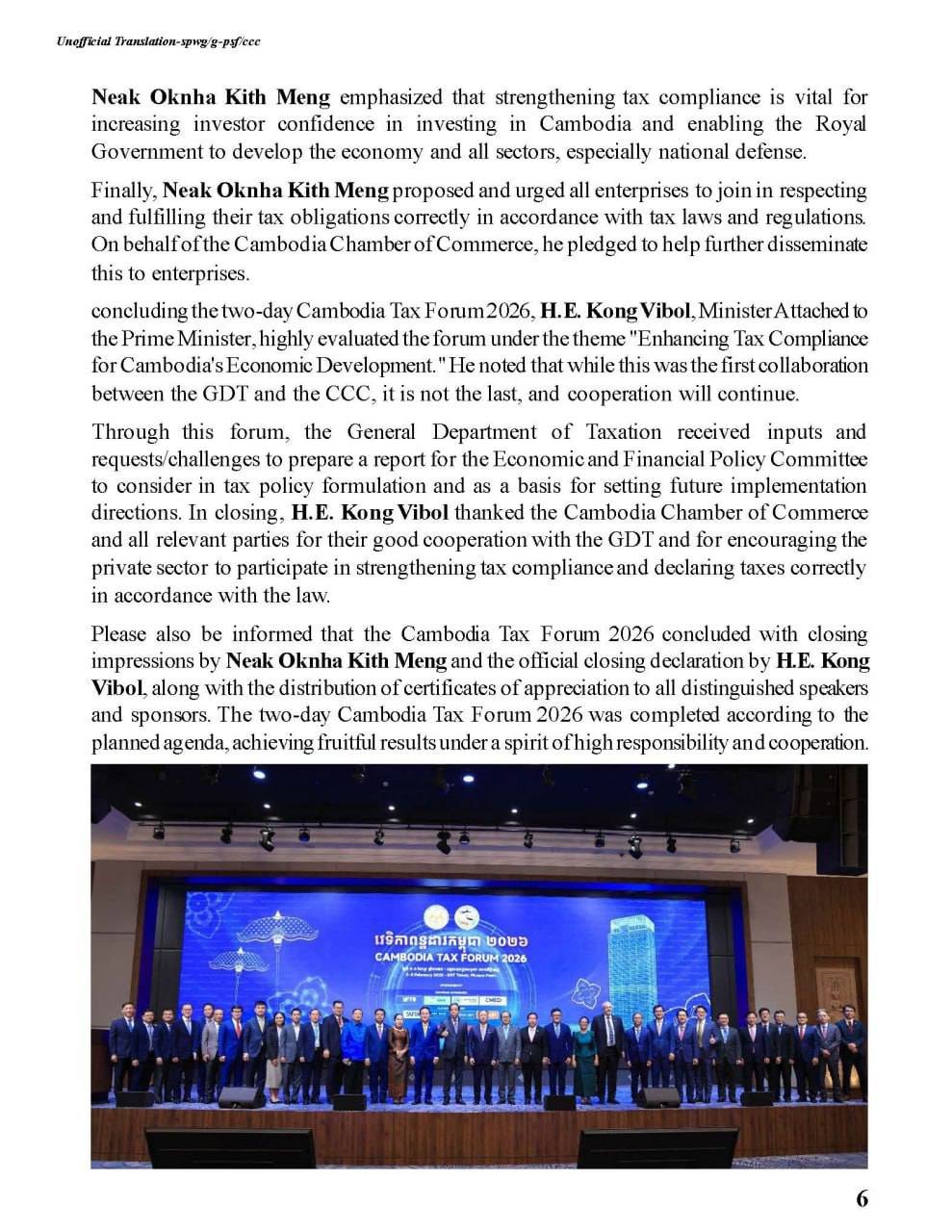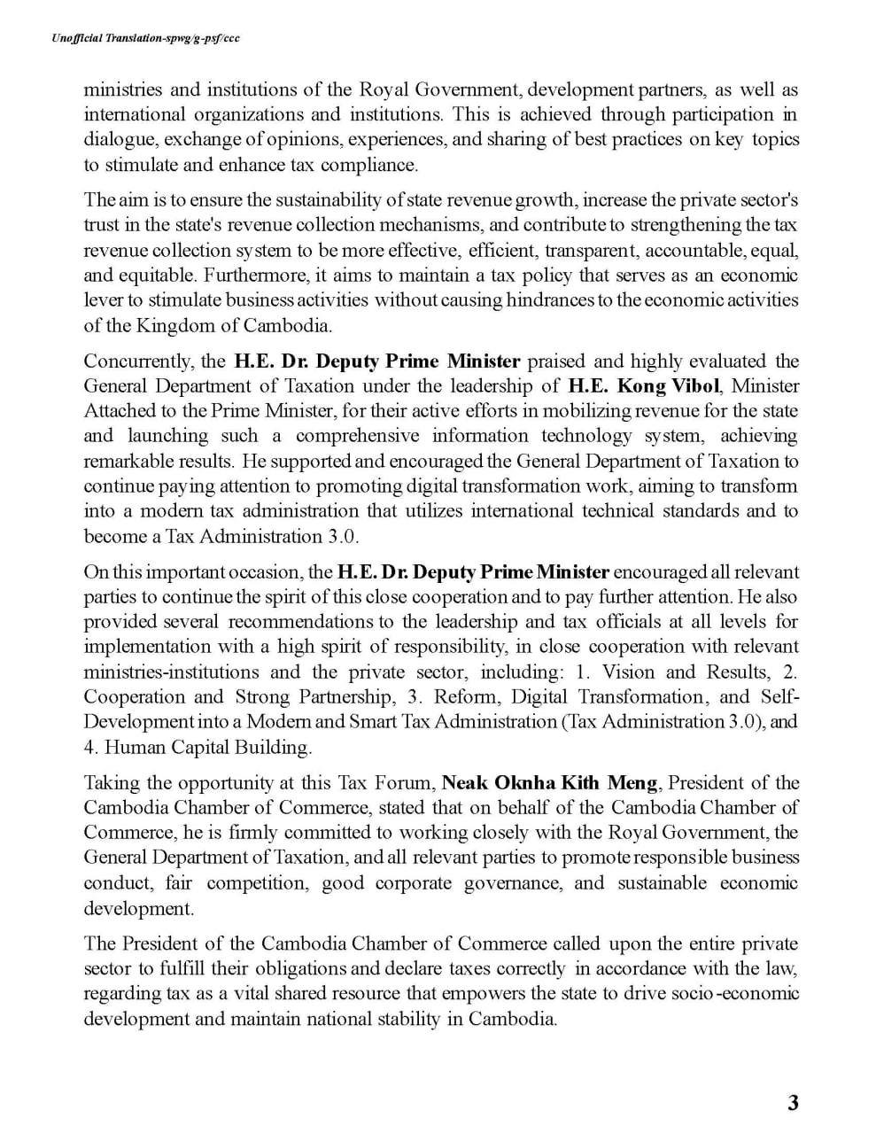 The Cambodia Chamber of Commerce earnestly appeals to the private sector, including both local and international companies operating in the Kingdom of Cambodia, to participate in promoting tax compliance.
